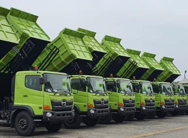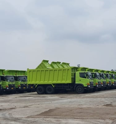 Damptruk, tronton, dan big truk untuk angkutan berat.
