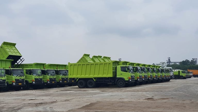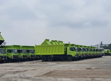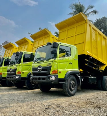 Layanan sewa dump truck untuk pengangkutan material tambang dan konstruksi.